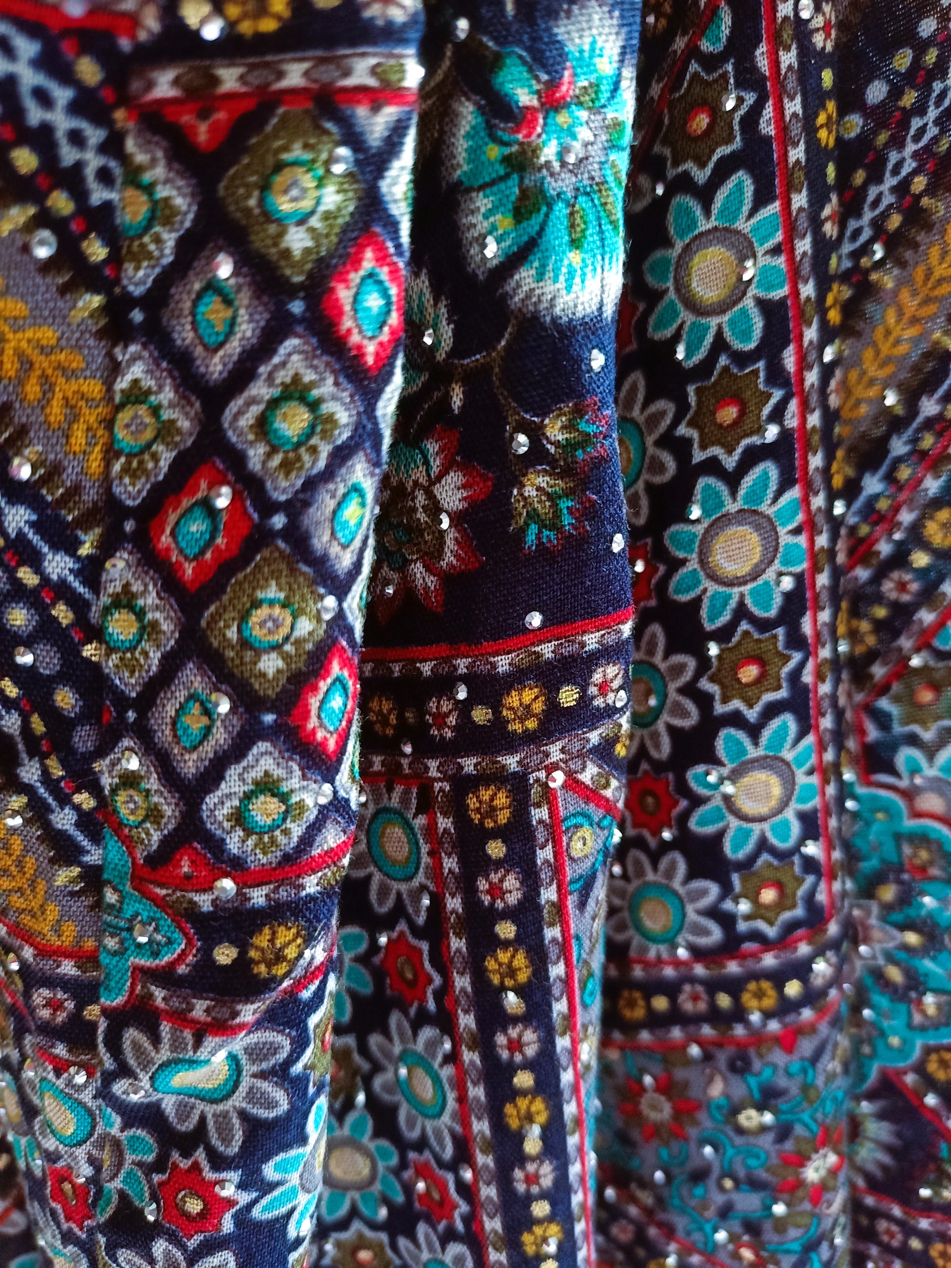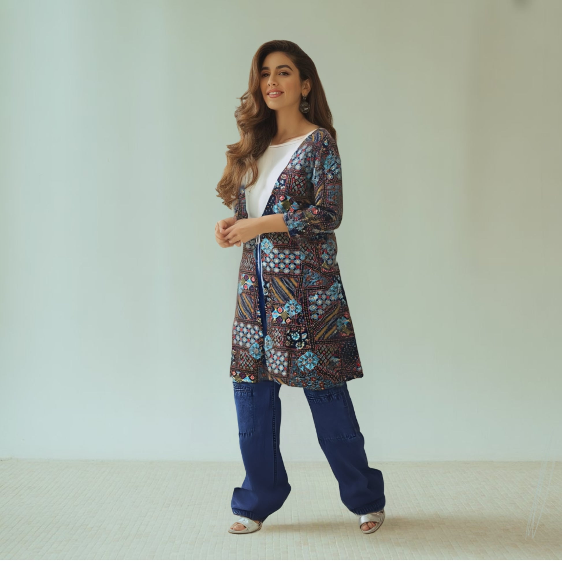 A celebration of pattern and poise, Indigo Mosaic pairs a deep navy canvas with intricate geometric motifs in turquoise, maroon, and gold accents. Its mid-length silhouette and drawstring waist create a flattering, versatile fit, while the rich color palette adds instant sophistication. Perfect for elevating casual layers or complementing chic evening ensembles, it’s where artistry meets effortless elegance.